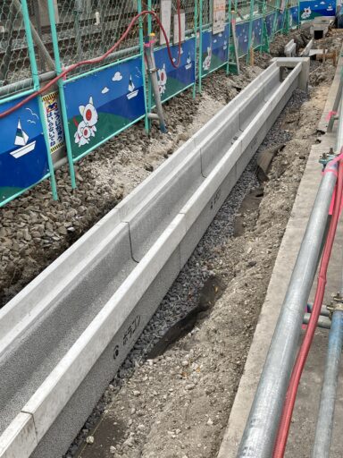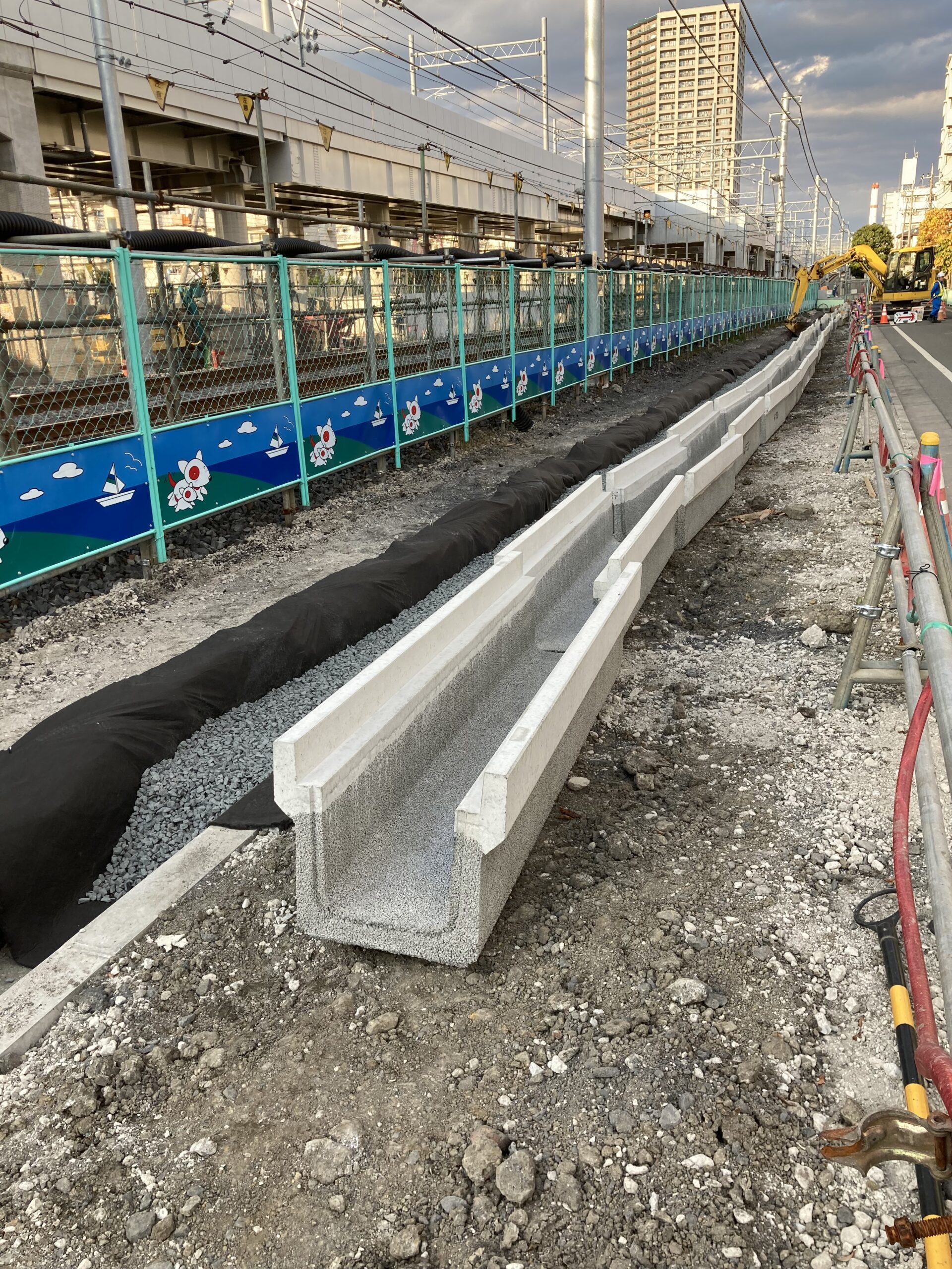 東京都足立区の竹ノ塚駅付近にて、雨水流出抑制施設として落蓋U形側溝SPU-300ANをご採用いただきました。